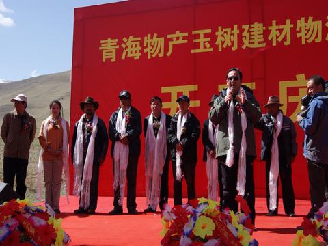省玉樹地震災后重建現場指揮部指揮長、副省長馬順清宣布建材物流集散中心正式開工并講話。省政府副秘書長巨偉、省經委、省城鄉住房建設廳、西寧市政府、玉樹州政府相關部門、玉樹縣有關負責同志,省物產集團總經理王玉輝、黨委書記白家林、副總經理物產化工公司董事長耿保平等參加了開工儀式。